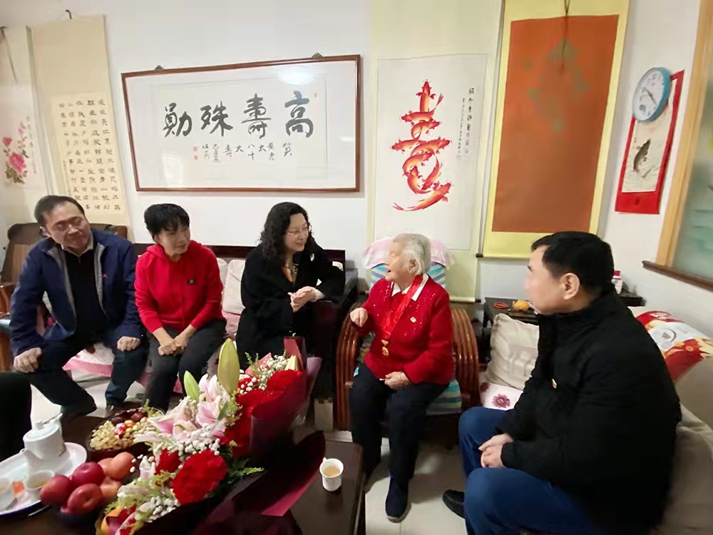 隨后黃蓓一行來(lái)到元首集團(tuán)離休老干部、老黨員黃顯和家中,送上鮮花和慰問(wèn)金,致以佳節(jié)祝福,與黃顯和老人座談交流。93歲的黃顯和老人年輕時(shí)在湖南讀書(shū)期間就接受革命洗禮,秘密加入學(xué)校進(jìn)步社團(tuán),在“白色恐怖”下開(kāi)展愛(ài)國(guó)運(yùn)動(dòng),轉(zhuǎn)業(yè)后在濟(jì)南針織廠(chǎng)辛勤耕耘近十八載,1982年4月離休,是名副其實(shí)的巾幗模范代表。黃蓓代表集團(tuán)黨委感謝她為黨和企業(yè)做出的突出貢獻(xiàn),對(duì)其在革命年代的英勇事跡表示崇高敬意,表示產(chǎn)發(fā)集團(tuán)要傳承好老一輩不懼艱辛、敢于奮斗、無(wú)私奉獻(xiàn)的精神,凝心聚力、接續(xù)奮斗。